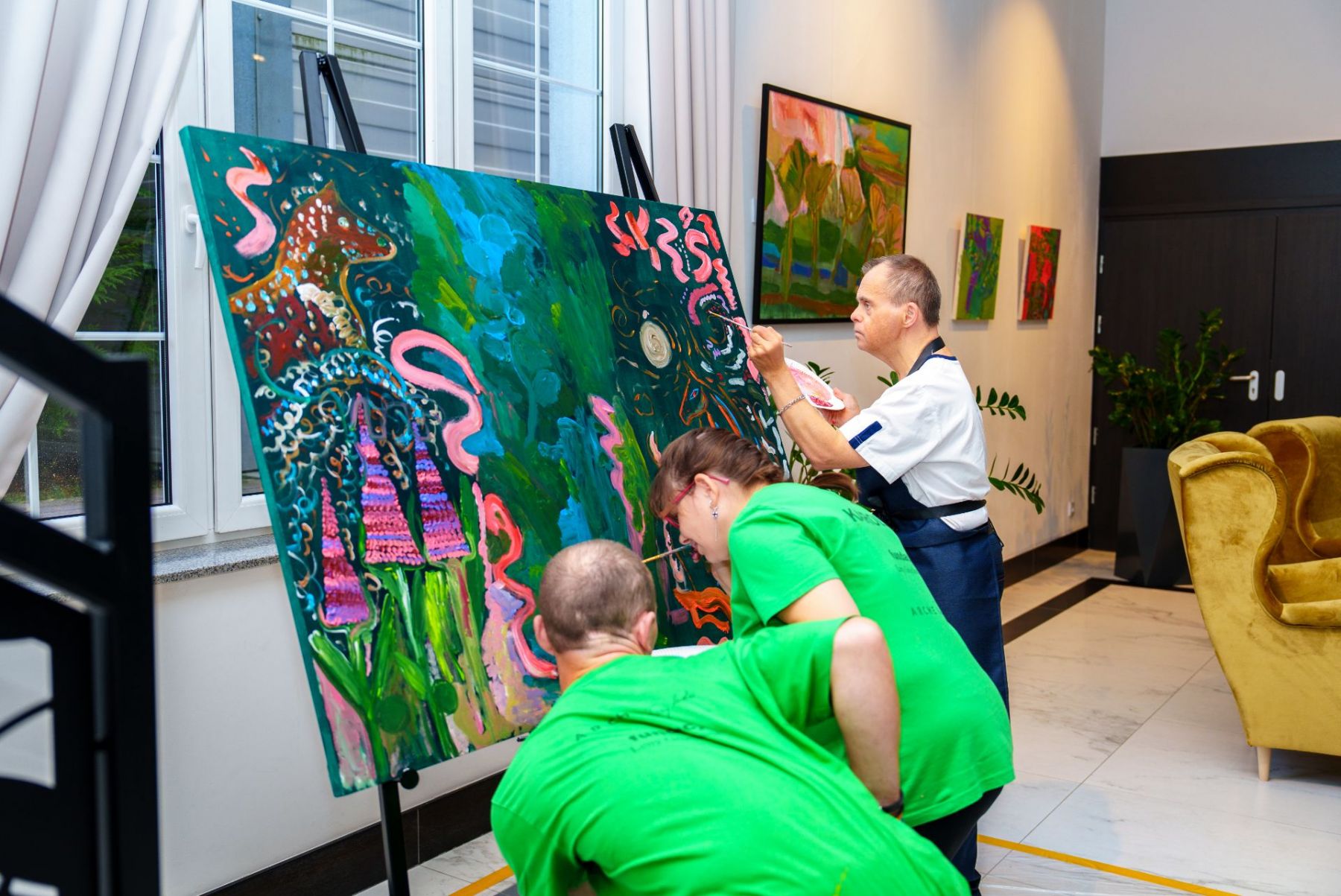 Zbiór prac malarskich i rzeźbiarskich 16 twórców, z nurtu sztuki naiwnej tworzonej przez artystów z niepełnosprawnościami intelektualnymi i profesjonalnej to nie lada gratka dla miłośników sztuki. Kluczem do stworzenia tej wystawy było połączenie artystów w pary, szukanie podobieństw formalnych, spójności tematycznej.